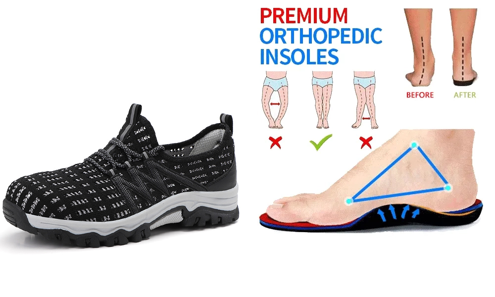 • Arch Support 👞: The outsole of this mens Hiking shoes is made from durable rubber material which can greatly reduce vibration from collisions. And the removable insole is made of memory foam which will provides strong arch support. These shoes provide even weight distribution, realigning your body.If you have plantar fasciitis, heel pain, foot pain, flat feet, these orthopedic shoes are your best choice.